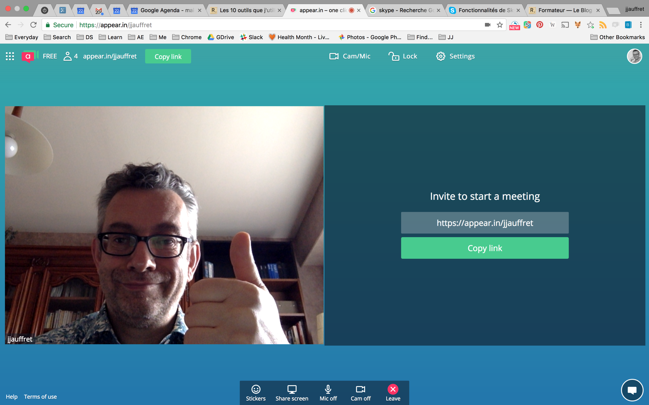Je me sers de appear.in depuis peu, comme d'une alternative à d'autres logiciels de visioconférence (tels Skype par exemple).