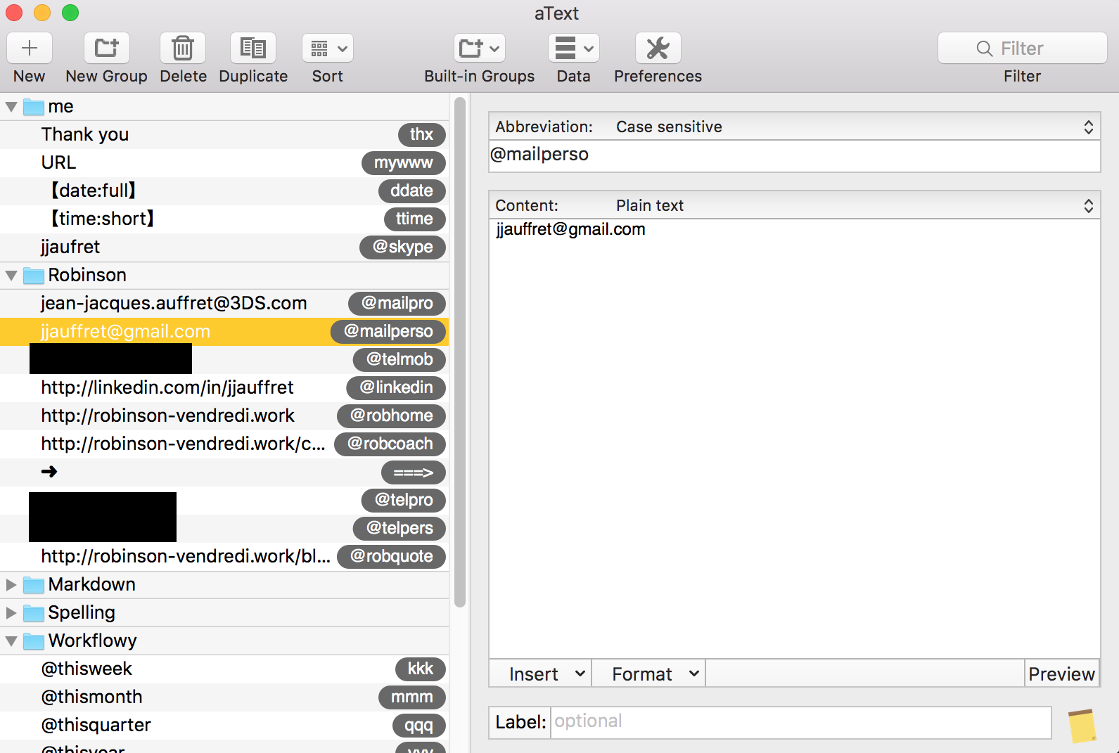 Le text expander que j'ai installé sur mon Mac s'appelle aText (et voici une selection de 9 autres pour Windows)